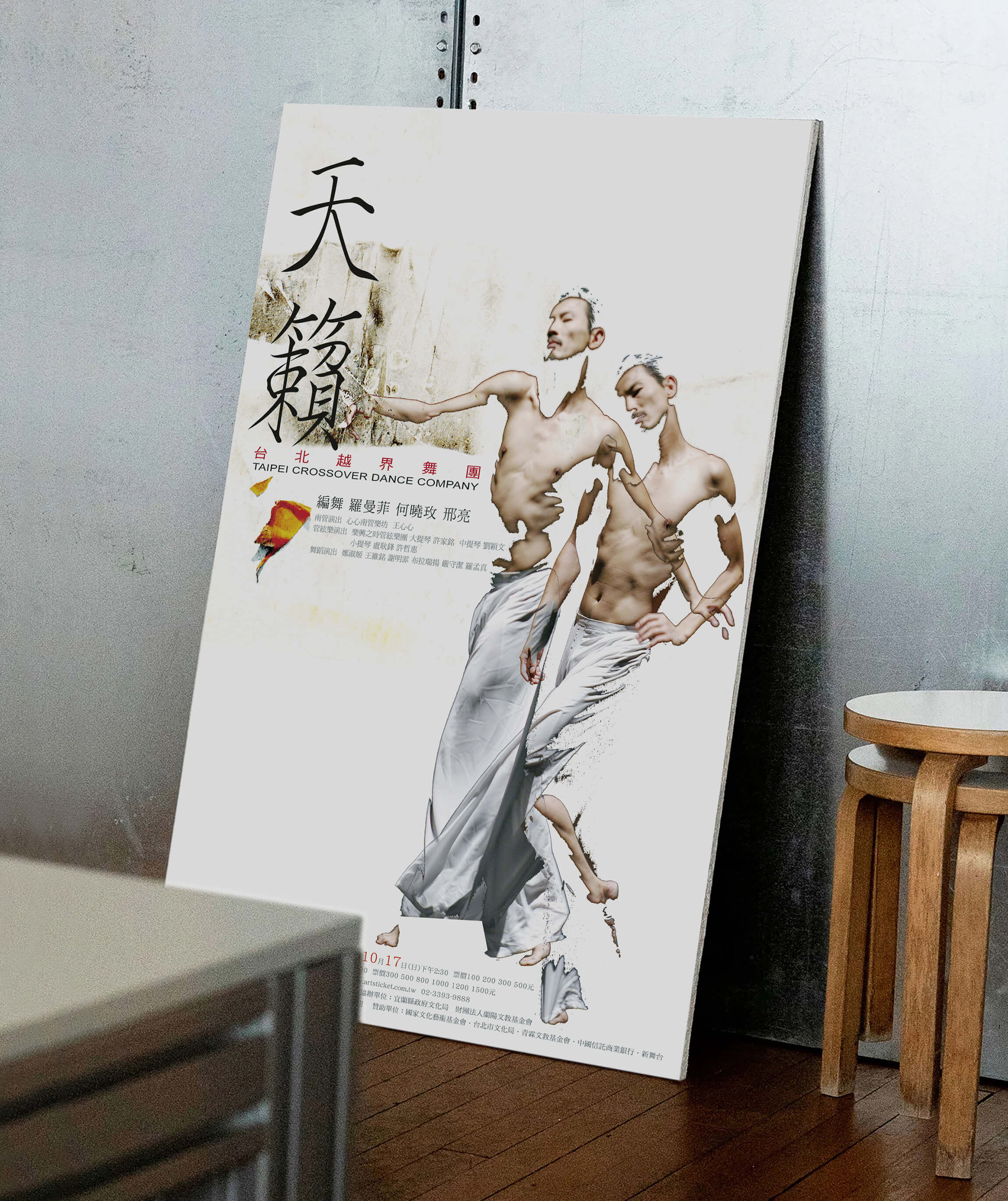 此作品是針對越界舞團所執行舞蹈表演的海報與宣傳品設計,由於演出內容是以超現實結合東方傳統的形式,